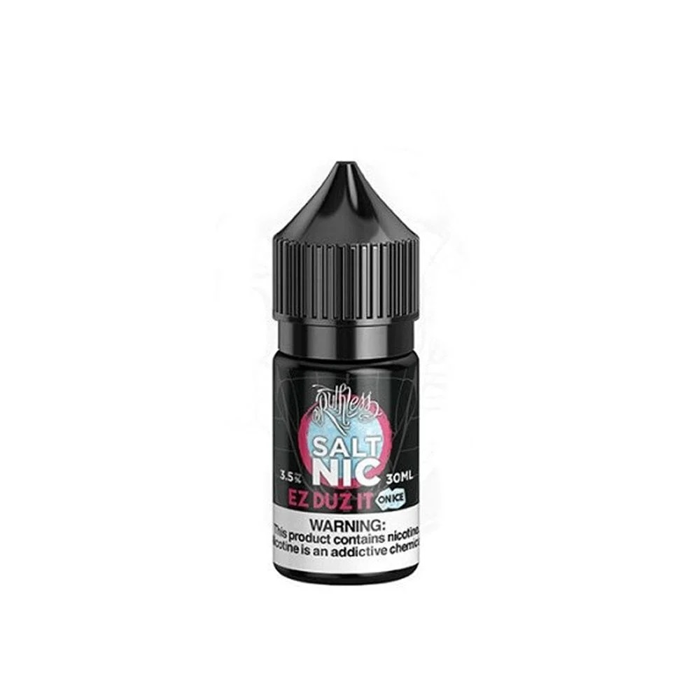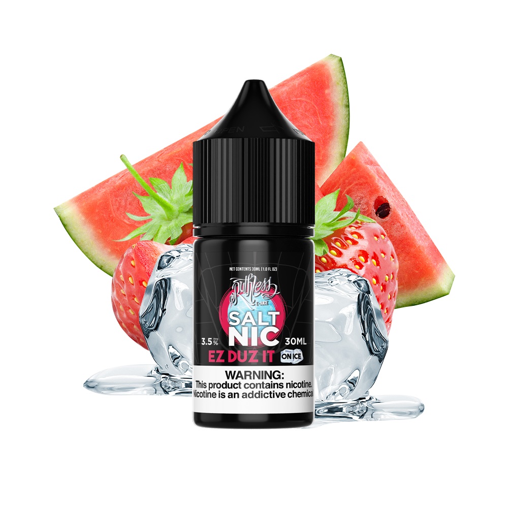 Ruthless Ez Duz It On Ice Salt nic is a fan-favorite from devoted Ruthless fans all across the world. If you’re looking for a consistent hit of fruity flavors and a subtle kick of menthol, Ez Duz It On Ice saltnic is a perfect e-juice for you. On the inhale, you’ll notice the incredibly smooth throat hit that Ruthless is known for. Every hit will deliver a consistent explosion of ripe strawberries, flavorful watermelon, and a hint of menthol to leave you with a refreshing finish. When you vape Ez Duz It On Ice after a long week, you’ll appreciate the little things in life. Kick your feet up, sit back, vape, and relax. EZ Duz It!